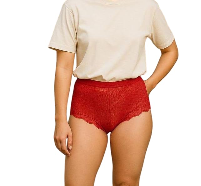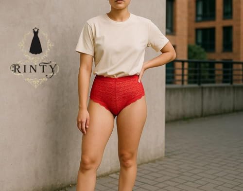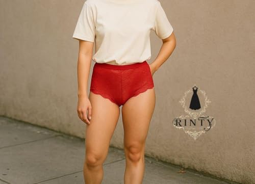 Generic - رينتي سروال داخلي نسائي، أحمر، دانتيل، خصر مرتفع مقاس متوسط