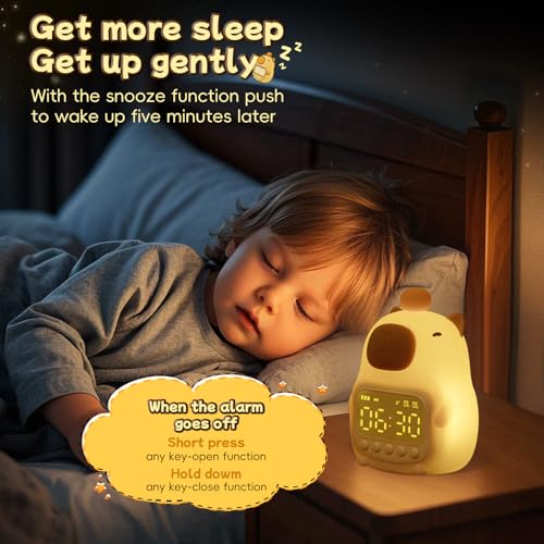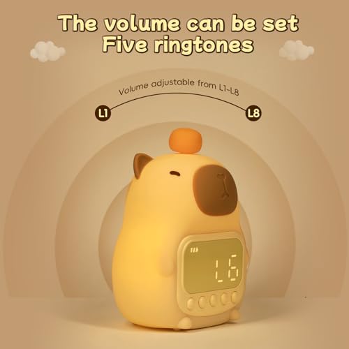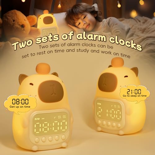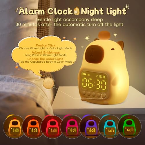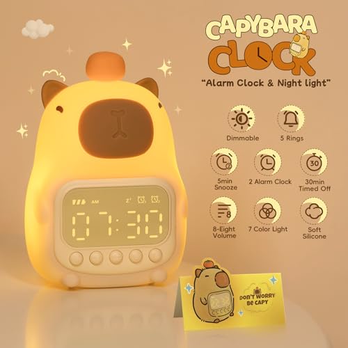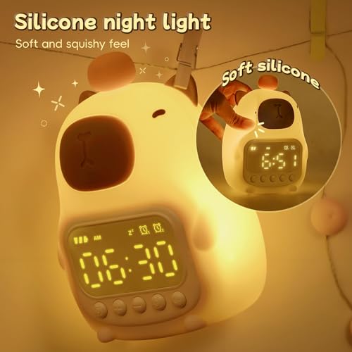 Raityibnd - ساعة منبه كابيبارا مع ضوء ليلي للاطفال، ساعات منبه لطيفة للاطفال الصغار لغرف النوم، ساعات موافق للاستيقاظ للبنات والاولاد، مصباح سيليكون على شكل حيوانات للاطفال، لون RGB