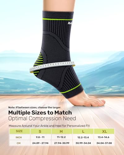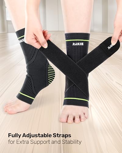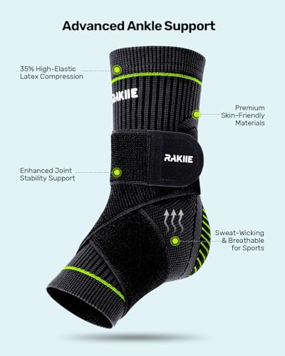 Rakiie - دعامة كاحل مع حزام قابل للتعديل من راكي، دعامة كاحل عالية المرونة جيدة التهوية لالتواء الكاحل والتهاب اللفافة الأخمصية والتهاب وتر العرقوب وضغط الكاحل للرجال والنساء، اخضر، مقاس اكس لارج
