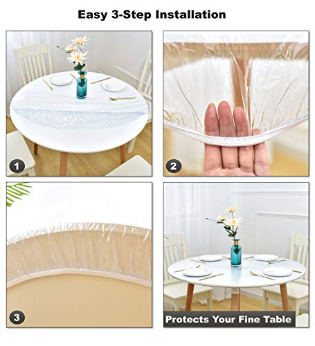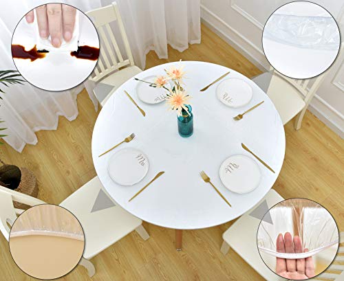 Rally Home Goods - مفرش ترابيزة دائري شفاف متين من الفينيل عالي التحمل للاستخدام الداخلي والخارجي رالي هوم جودز ذو حافة مرنة ومقاوم للماء وقابل للمسح واقي بلاستيكي ناعم للترابيزة بقطر 91 سم -1.07 متر