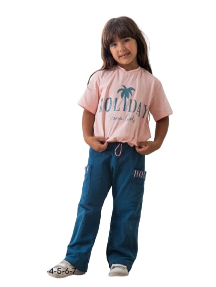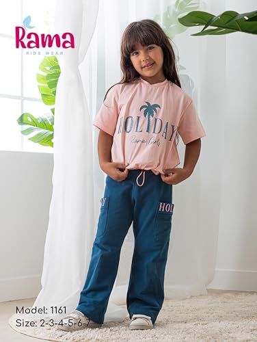 Rama - راما طقم بيجامة مطبوع للبنات مكون من تيشرت وبنطلون مطرز - 1161 - لون روز