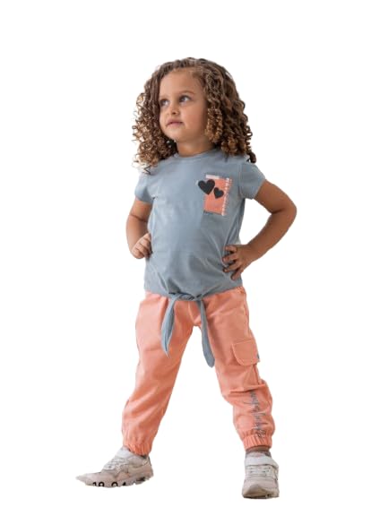 Rama - راما طقم بيجامة مطبوع للبنات مكون من تيشرت وبنطلون - 6129 - لون ازرق داستي