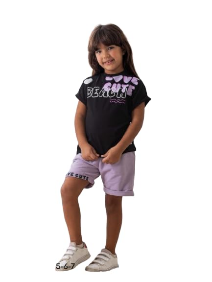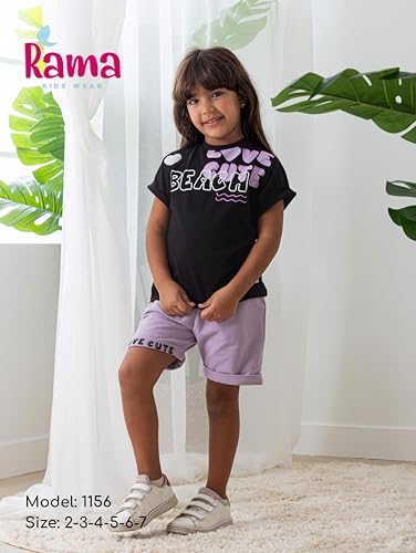 Rama - راما طقم بيجامة مطبوع للبنات مكون من تيشرت وشورت - 1156-اسود