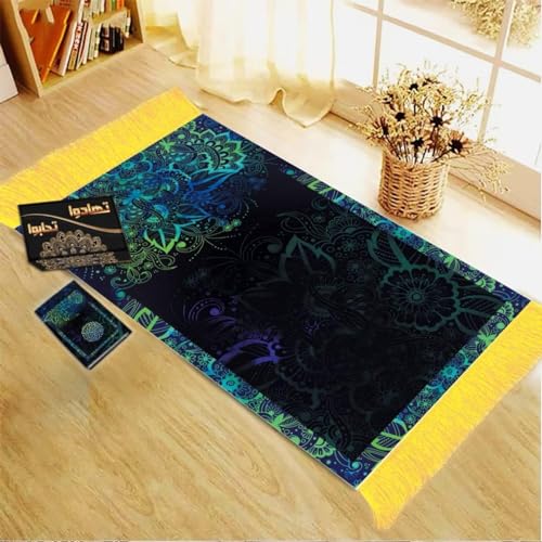 Generic - بوكس رمضان (سجادة قطيفة + مصحف + مبخرة + كرت أزكار + بخور + سبحة) تهادووا تحبو اندف خامة (الأسود مع الألوان الزخرفية)