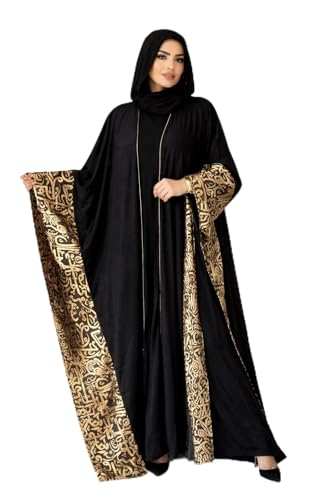 قفطان كارديجان رمضان أسود وذهبي، قطيفة، عباية طويلة بتصميم عربي تقليدي