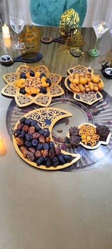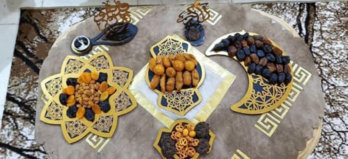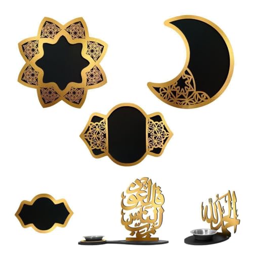 Generic - طقم كوستر بوكس مكون من 5 قطع بتصميم رمضاني مميز – أشكال فانوس وهلال ونجمة مع استاند – مناسب للديكور والتقديم s