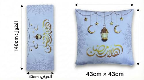 Generic - مفرش طاولة بتصميم هلال ومسجد رمضان، 140 × 43 سم، قماش بوليستر وقطن، زخارف اسلامية تقليدية، العاب اطفال رائعة (4)