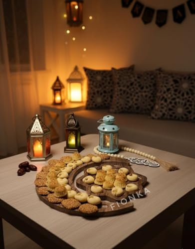 - متعدد الاستخدامات: مثالي لتقديم التمور والمكسرات والشوكولاتة والكعك، أو استخدامه كقاعدة ديكور رمضانية أنيقة في مدخل المنزل