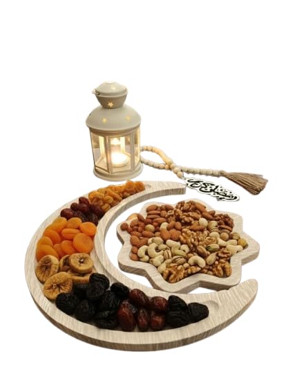 Generic - طقم تقديم رمضاني بتصميم الهلال والنجمة، خشب مستورد، 37×37 سم، قطعتين، مقاوم للماء والخدوش، للتمور والمكسرات والحلويات S