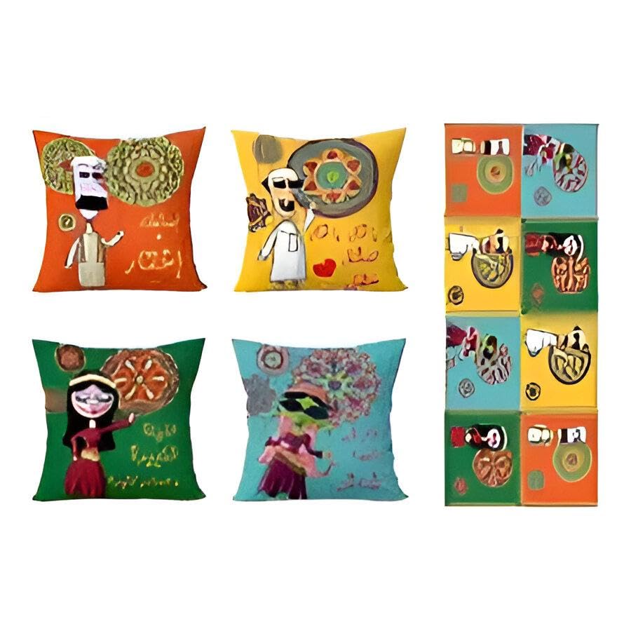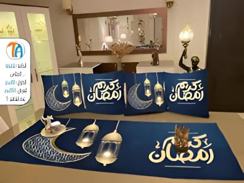 Generic - طقم وسائد رمضان - مجموعة وسائد فاخرة من 4 قطع (40 سم × 40 سم لكل منهما) بزخارف رمضان عالية الدقة مزدوجة الجوانب، بالإضافة إلى عداء 145 سم × 55 سم، لمسة نهائية انيقة حصرية لافطار انيق