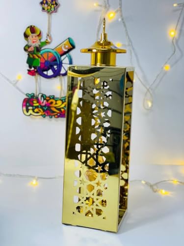 - تصميم عملي وأنيق: كل فانوس مزود بمقبض علوي للحمل والتعليق بسهولة، مع إطار زجاجي شفاف يبرز جمال الزخارف الذهبية الداخلية
