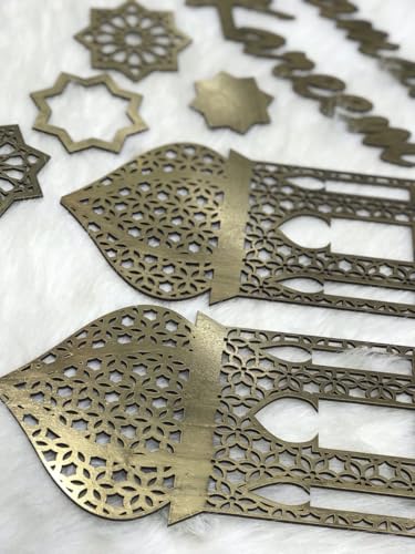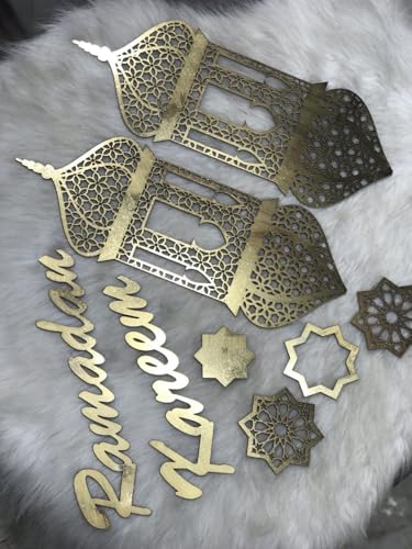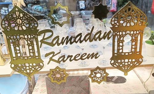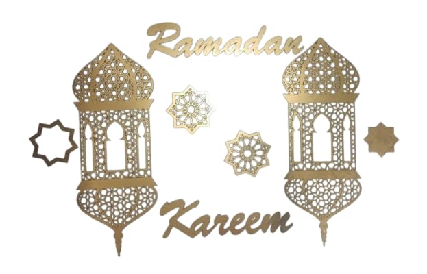 Generic - زينه ديكوررمضان خشبي فاخرزينة ثلاثية الأبعاد بعبارة رمضان كريم قطع ديكور إسلامي لسطح الطاولة والمكتب تصميم احتفالي بشهر الصيام 8 قطع