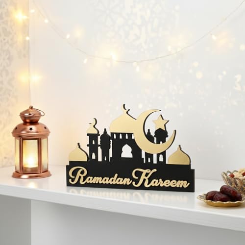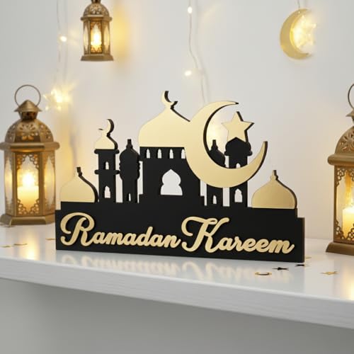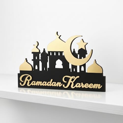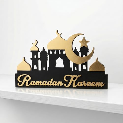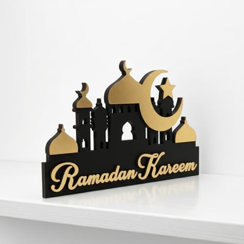 Generic - ديكور رمضاني خشبي, ديكور للرف بلون أسود في ذهبي بسماكة 14 ملم، مناسب لتزيين الرف ويضيف لمسة رمضانية عصرية وأنيقة، بخامة عالية الجودة وفينش متقن يجعله هدية مثالية في رمضان