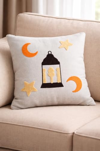 Generic - كوشن زينة رمضاني بتطريز فانوس وهلال ونجوم، وسادة ديكور موسمية
