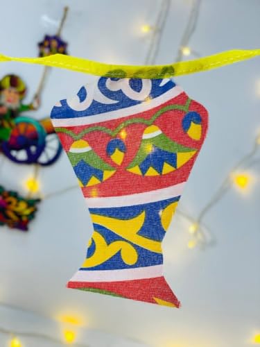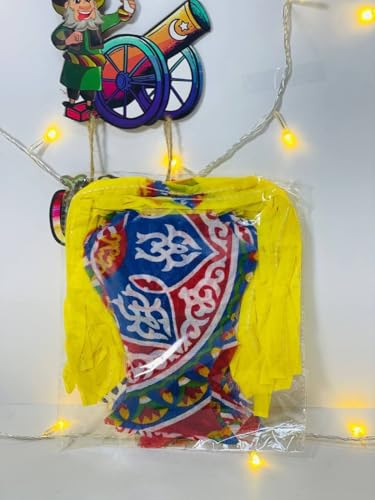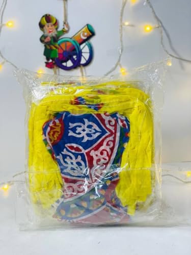 Generic - فانوس رمضان مزخرف من القماش بشريط أصفر، تصميم الخط العربي التقليدي، نمط متعدد الألوان 120 م