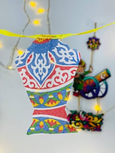 - تصميم فني مبهج: كل قطعة على شكل فانوس رمضاني مطبوع على قماش متين بزخارف هندسية وإسلامية تقليدية تعكس التراث الثقافي للشهر الكريم