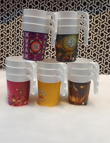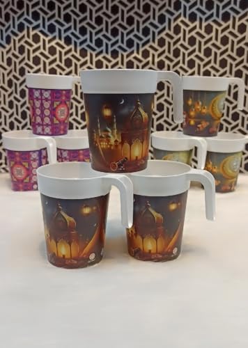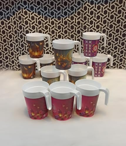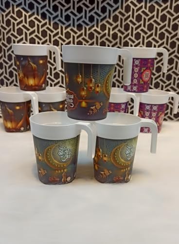 Generic - طقم أكواب شرب لرمضان 3 أكواب بلاستيكية بمقبض مريح، آمنة للطعام وقابلة لإعادة الاستخدام للمشروبات الباردة، ديكور أنيق للطاولة والاستخدام اليومي (3 مجموعات (9 قطع))