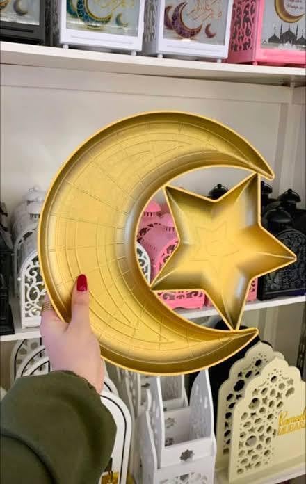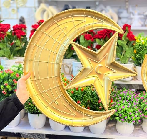 - تصميم ذهبي أنيق: زخرفة هلال ونجوم بلمسة نهائية ذهبية فاخرة، مثالية للديكور الاحتفالي خلال شهر رمضان أو العيد أو المناسبات الخاصة الأخرى.