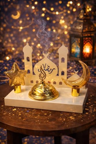 - مبخرة معدنية بالكامل على الطراز العثماني مع صورة ظلية مفصلة للمسجد، مما يضيف لمسة من الأناقة التاريخية إلى أي مساحة.