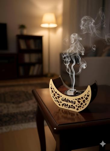 Generic - مبخرة رمضان - مبخرة خشبية بتصميم هلال عربي رائع للعود الفاخر، ديكور اسلامي مثالي لاحتفالات رمضان وهدايا العيد