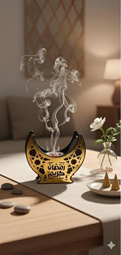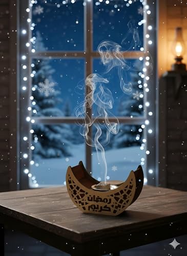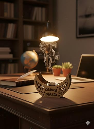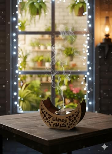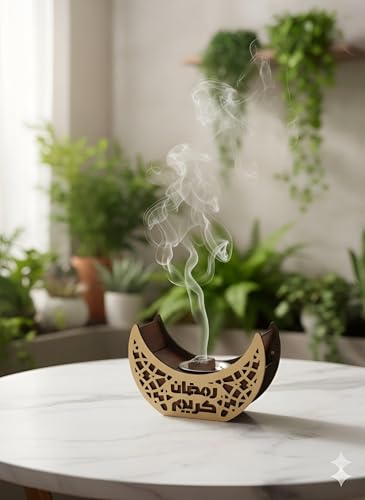Generic - مبخرة رمضان - مبخرة هلال رمضان رائعة مصنوعة من الخشب الفاخر لعطر العود الفاخر، قطعة ديكور مثالية لاحتفالات العيد