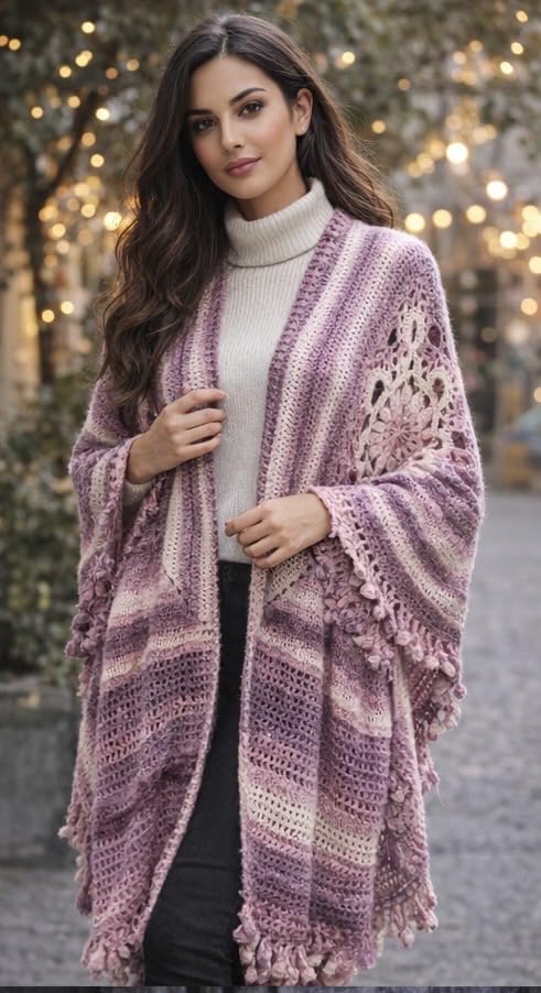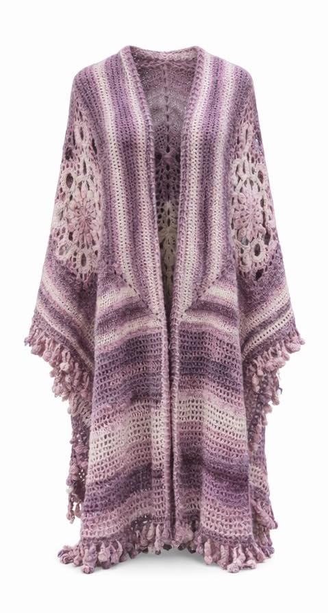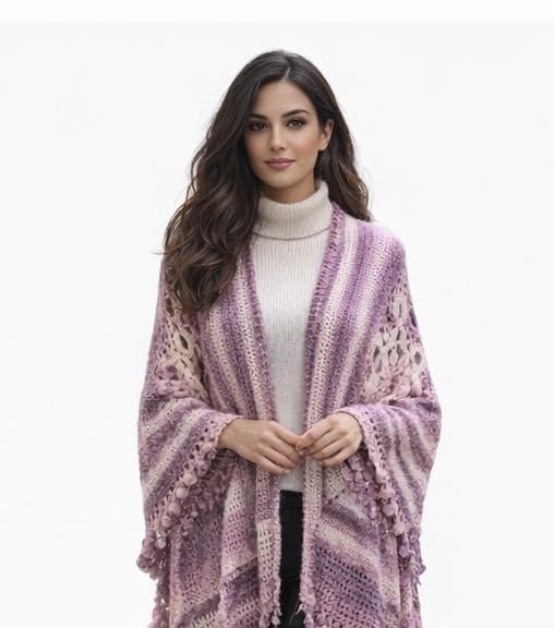 Generic - شال وقفطان رمضان ،مفتوح بدون اكمام تصميم مفتوح، أكمام واسعة، تفاصيل زهور، حواف بشراشيب بونبون صغيره