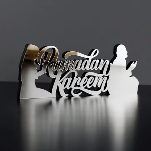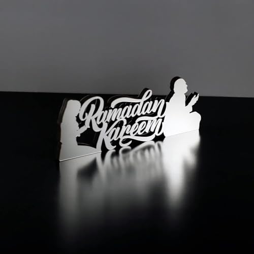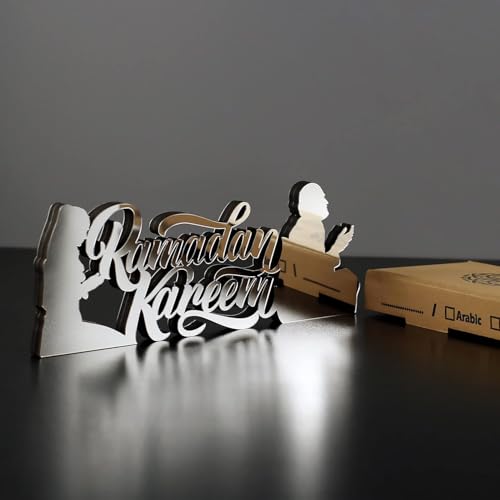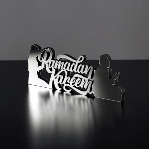 - تصميم أنيق: لوحة فنية جدارية معدنية حديثة ثلاثية الأبعاد تتميز بعبارة "رمضان كريم" بخط عربي مذهل، مصنوعة من معدن فاخر بلمسة نهائية فضية لديكور إسلامي راقي