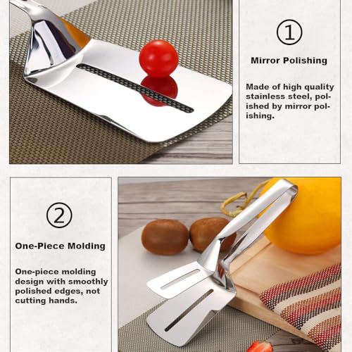 - ✪【مشبك اللحم】إنه أكبر من الملاقط العادية وقوي بما يكفي لقلب الأشياء وقليها في الزيت. رائعة لرفع وتحويل ونقل الأسماك الكاملة والبيتزا والبرغر والبيض والشرائح والمأكولات البحرية والكعك وأكثر من ذلك. يقوم المشبك المشقوق بتصريف الدهون الزائدة مرة أخرى في المقلاة لجعل الطعام أكثر صحة