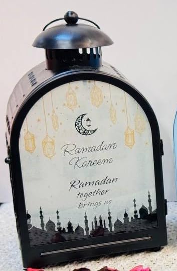 Generic - فانوس رمضان كريم للديكور، معدن اسود بتصميم ذهبي، نمط صورة ظلية للمسجد