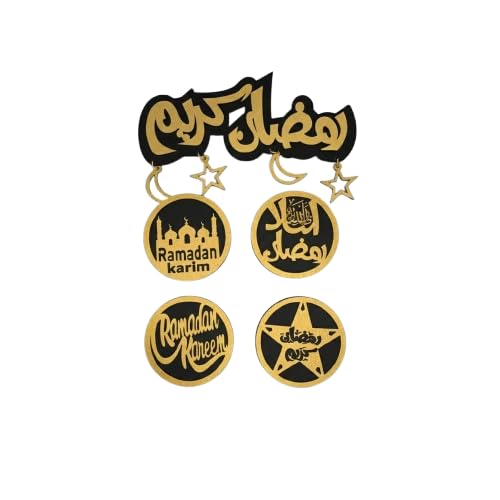 Generic - مغناطيس ثلاجة بتصميم رمضان كريم، اسود وذهبي، تصميم إسلامي، تصميم قمر ونجوم، مجموعة من 5 قطع