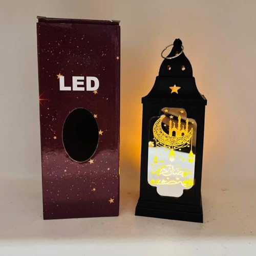 Generic - فانوس رباعي بتصميم عصري منقوش بعبارة رمضان كريم وإضاءة دافئة مبهجة AM