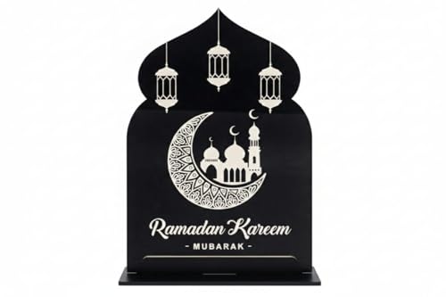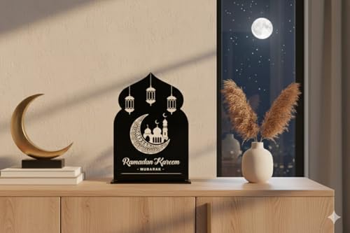 Generic - لوحة ديكور رمضان كريم مبارك، تصميم قبة مسجد مع هلال وفوانيس، أسود، زينة إسلامية للمنزل، 30x20x8 سم