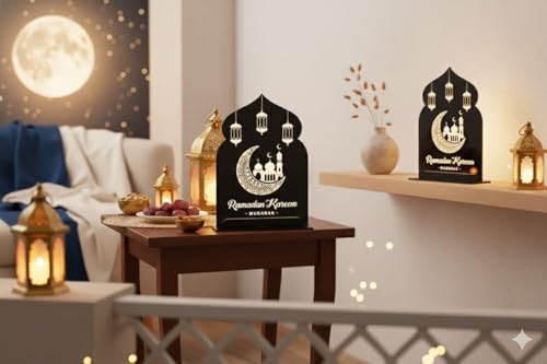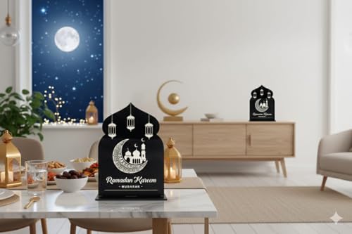 - زينة رمضانية مثالية: قطعة ديكور مستقلة مصممة خصيصاً لتزيين المنزل أو المكتب خلال شهر رمضان المبارك، تخلق أجواء احتفالية دافئة
