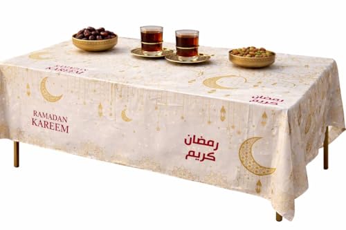 Generic - مفرش طاولة رمضان كريم، مشمع مقاوم للماء، تصميم هلال ونجوم ذهبي، 1 متر × 1.5 متر&