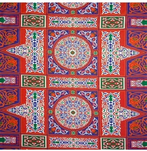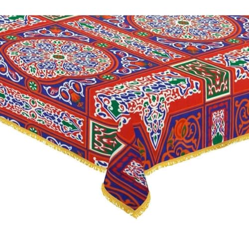 Generic - مفرش ترابيزة بتصميم خيامي لرمضان خامه ثقيله من القطن مع طرف مزين بلون اصفر مقاس 1.5 × 1.5 متر شكل مربع