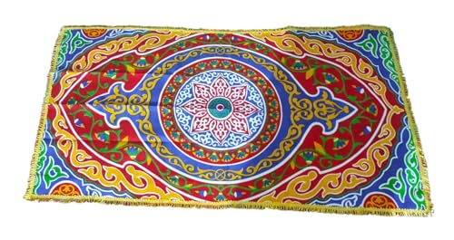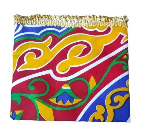 LC - مفرش طاولة رمضان خيامية من القماش مع طرف زينة اصفر مقاس 65 × 100 سم
