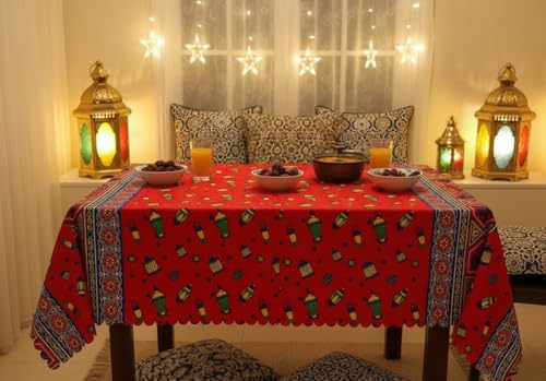 Generic - مفرش رمضاني بطبعة الخيامية، قماش أحمر بزخارف ملونة، مقاس 125×160 سم، لأجواء رمضان 2026
