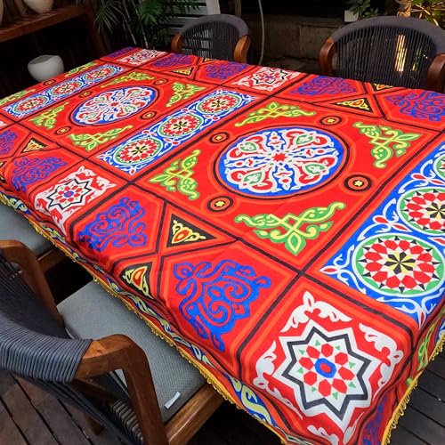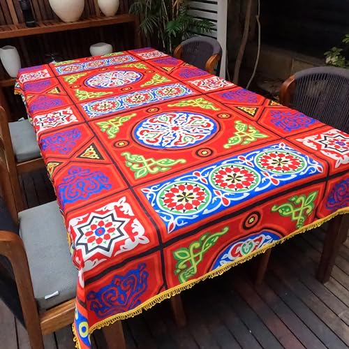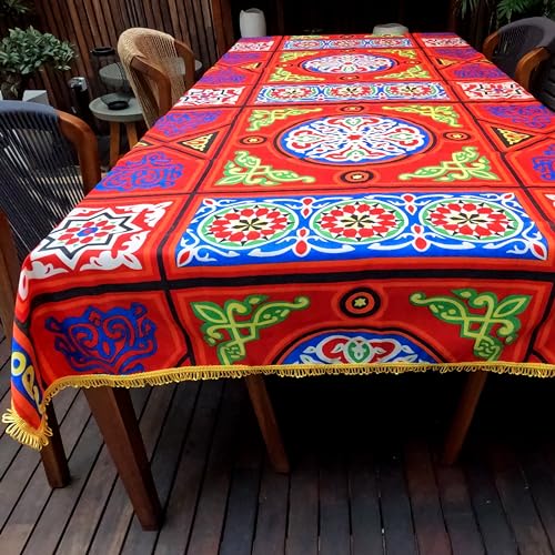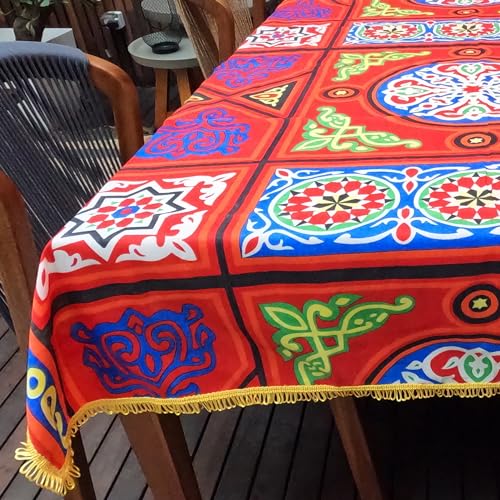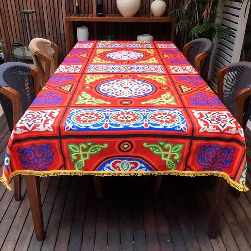Generic - مفرش طاولة بتصميم خيامية بشراشيب حول الحواف سلسلة حمراء 250 × 140 سم مزيج القطن والبوليستر ريد 2 x
