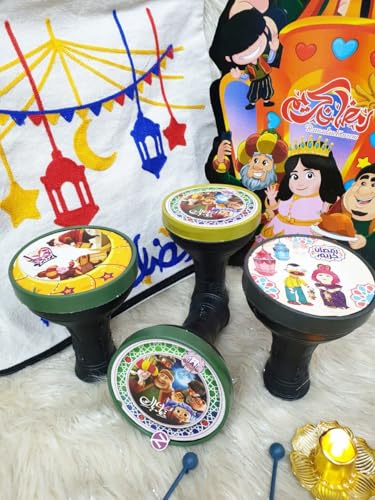 Generic - طبلة رمضانية للأطفال مع عصا، تصميم شخصيات كرتونية، ألعاب موسيقية احتفالية للأطفال