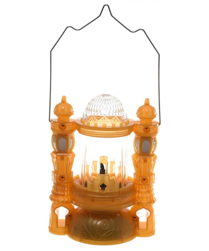 Generic - فانوس رمضان اكريليك على شكل مسجد مع ضوء مدمج وموسيقى، اصفر، 15 × 8 × 2 سم