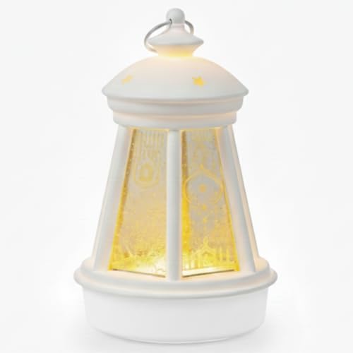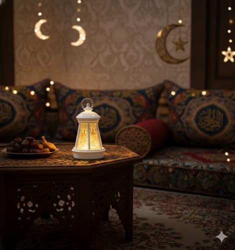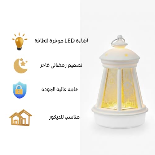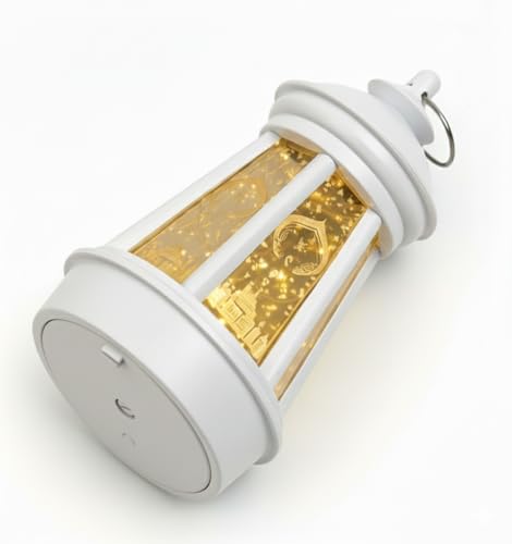 Generic - فانوس رمضان بتصميم كلاسيكي مضيء مع شمعة داخلية متوهجة (ابيض1)