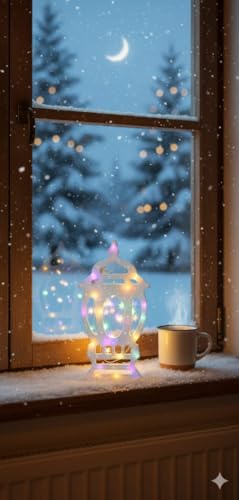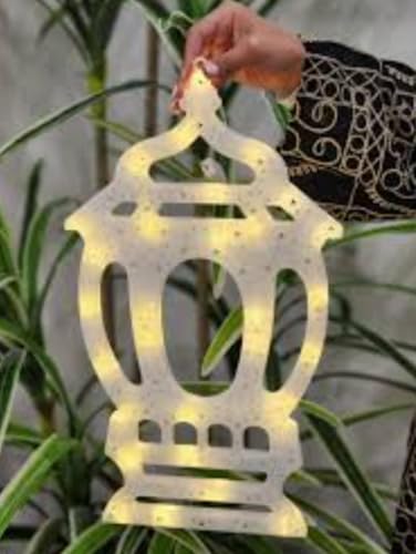 Generic - فانوس رمضاني مضيء بإضاءة ملونة، تصميم إسلامي تقليدي، لون أبيض، ديكور رمضاني للمنزل