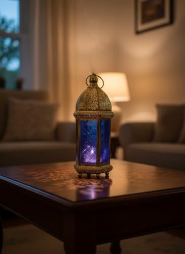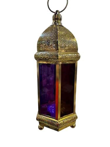 Generic - فانوس رمضان مزخرف بزجاج ملون، تصميم مغربي تقليدي بقبة ذهبية مثقبة