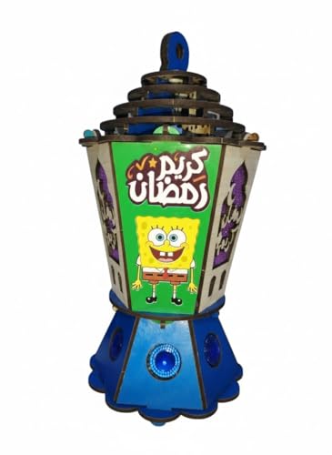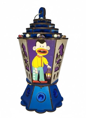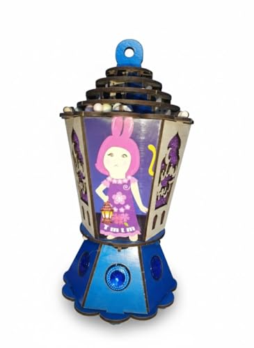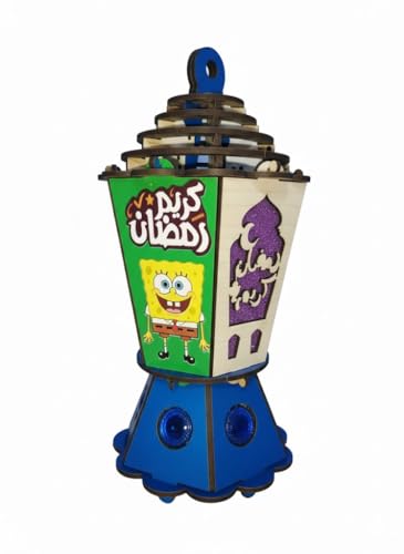 Generic - فانوس رمضان مضيء للأطفال بإضاءة LED ووحدة موسيقى – تصميم خشبي برسومات كرتونية جذابة – يشغل أغاني رمضان – ديكور وزينة رمضان للمنزل وغرف الأطفال