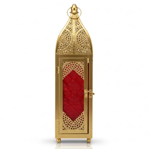 Generic - فانوس رمضان ذهبي كلاسيكي مزخرف بزجاج أحمر منقوش