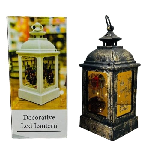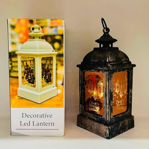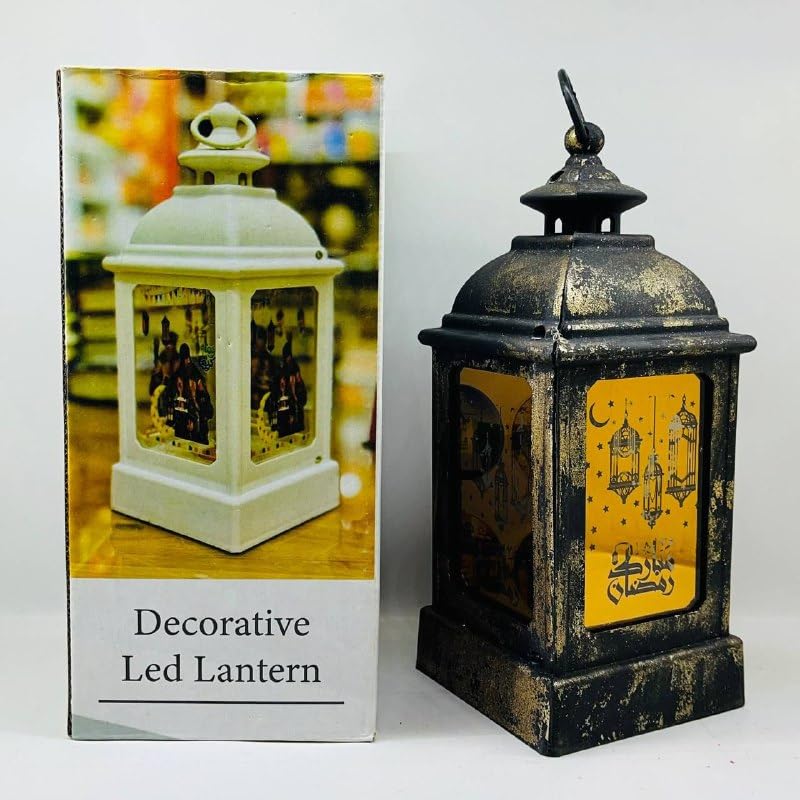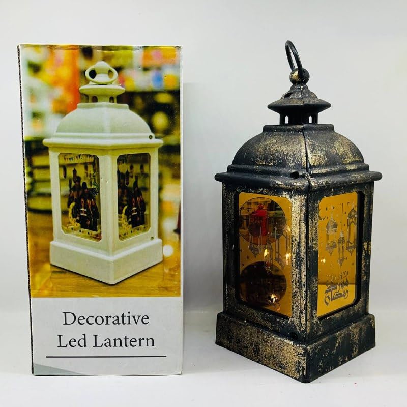 Generic - فانوس رمضان ذهبي منقوش مع أسطوانة صوت ونور في علبة هدايا رمضان كريم AM