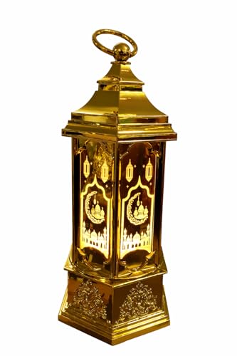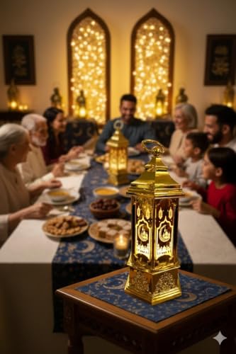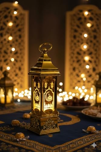 Generic - فانوس رمضاني ذهبي لامع بتصميم إسلامي تقليدي، إضاءة محيطية دافئة، ديكور رمضان وعيد الفطر