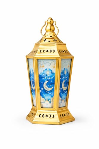 Generic - فانوس رمضان ذهبي فاخر بإضاءة LED وصوت Ramadan Decorative Lantern with LED Light & Sound (لبني)