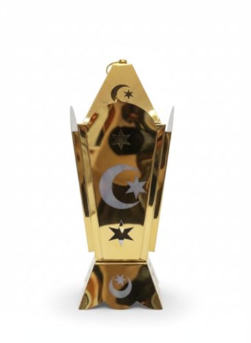 LC - فانوس رمضان معدني ذهبي بتصميم هلال اسلامي عربي ونجمة لديكور المنزل التقليدي