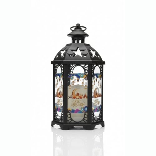 - إضاءة شمعة LED هادئة: يحتوي في داخله على شمعة إلكترونية توفر إضاءة صفراء دافئة، تمنحكِ أجواء الشموع التقليدية بمنتهى الأمان دون لهب أو دخان. زخارف أرابيسك مفرغة: يتميز الإطار الأسود بنقوش إسلامية مفرغة دقيقة (Arabesque) تضفي لمسة جمالية مضاعفة عند تشغيل الإضاءة.